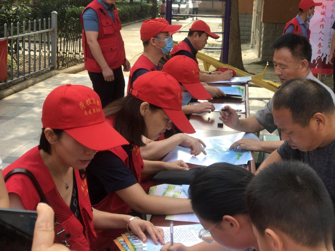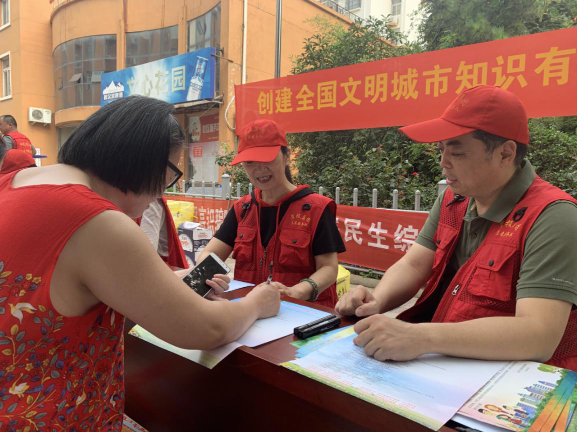 為進一步提高創(chuàng)建全國文明城市群眾知曉率、參與率、滿意率,營造濃厚的創(chuàng)城氛圍,8月22日上午,菏澤投資發(fā)展集團有限公司黨委副書記、總經(jīng)理、創(chuàng)建全國文明城市、國家衛(wèi)生城市工作領導小組組長丁萬國,黨委副書記、創(chuàng)建全國文明城市、國家衛(wèi)生城市工作領導小組副組長郭菏玉帶領市管干部以普通黨員志愿者身份走進公司包聯(lián)的吳堤口社區(qū)下轄小區(qū)文心花園開展“創(chuàng)建全國文明城市知識有獎競答活動”,為助力我市創(chuàng)建全國文明城市再添光彩。