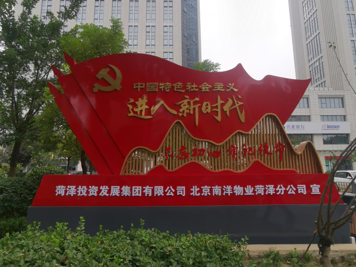 為積極響應(yīng)市委、市政府關(guān)于創(chuàng)建全國(guó)文明城市的號(hào)召,充分發(fā)揮黨建引領(lǐng)作用,大力弘揚(yáng)中華民族優(yōu)秀傳統(tǒng)文化,培育和踐行社會(huì)主義核心價(jià)值觀,著力提升公民道德文化素養(yǎng)和城市文明水準(zhǔn),在公司黨委的正確指引和大力支持下,9月22日中秋和國(guó)慶雙節(jié)來(lái)臨之際,集團(tuán)公司在經(jīng)典國(guó)際辦公區(qū)域入口處兩側(cè)分別設(shè)計(jì)安裝了大型黨建和社會(huì)主義核心價(jià)值觀主題標(biāo)識(shí)牌。以高質(zhì)量造型雕塑為載體,充分展現(xiàn)了黨的意識(shí)形態(tài)陣地建設(shè)與周邊優(yōu)美的自然環(huán)境園林綠化的完美融合,把菏投集團(tuán)打造成以黨建為引領(lǐng),匯聚人心、凝聚合力、堅(jiān)守意識(shí)形態(tài)陣地建設(shè)的示范窗口。