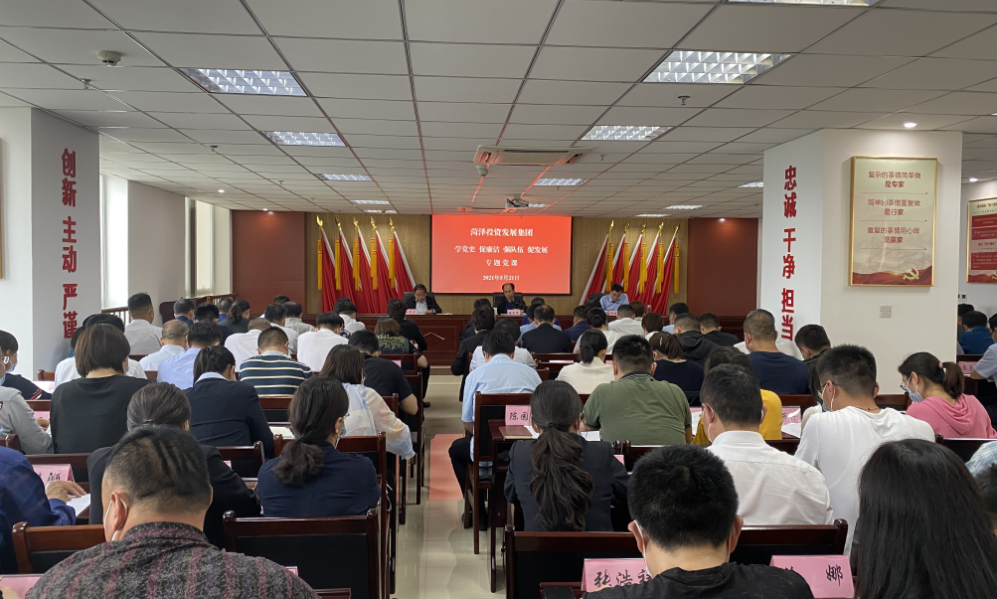 5月21日,菏投集團(tuán)組織召開“學(xué)黨史 促廉潔 強(qiáng)隊(duì)伍 促發(fā)展”專題黨課。公司黨委副書記郭菏玉主持會(huì)議,黨委書記、董事長(zhǎng)徐文芹,黨委副書記、總經(jīng)理丁萬國(guó)出席會(huì)議并講話。公司合署辦公機(jī)構(gòu)全體,各企業(yè)副總級(jí)以上人員及綜合管理部部長(zhǎng)助理以上人員、會(huì)計(jì)部全體人員參加會(huì)議。