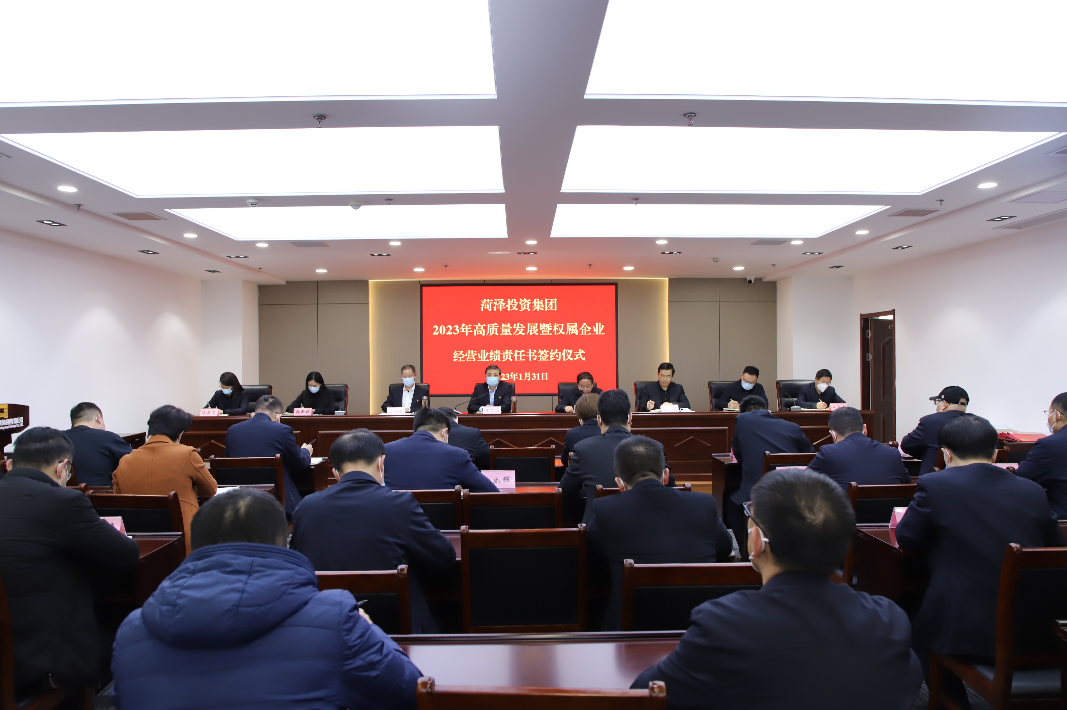 為確保年度工作起好步、開好局,1月31日,菏澤投資集團組織召開2023年高質(zhì)量發(fā)展暨權(quán)屬企業(yè)經(jīng)營業(yè)績責任書簽約儀式。公司市管干部、權(quán)屬企業(yè)副總級以上管理人員、綜合管理部、財務(wù)部負責同志、合署辦公機關(guān)全體共計130余人參會。
