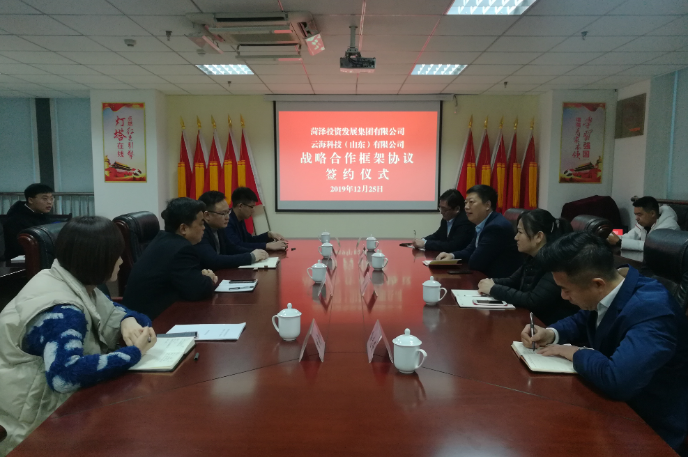 為貫徹落實《菏澤市智慧城市頂層設(shè)計(總體規(guī)劃)》、《菏澤市智慧城市三年行動計劃(2019-2021)》等文件要求,積極響應(yīng)市委市政府關(guān)于加快智慧城市建設(shè)的號召。2019年12月25日上午,菏澤投資發(fā)展集團(tuán)有限公司與云??萍迹ㄉ綎|)有限公司戰(zhàn)略合作框架協(xié)議簽約儀式在菏投集團(tuán)公司第二會議室隆重舉行。菏投集團(tuán)公司黨委副書記、總經(jīng)理丁萬國與云海科技(山東)有限公司董事長王如輝代表雙方簽署《戰(zhàn)略合作框架協(xié)議》,菏投集團(tuán)公司黨委委員、副總經(jīng)理肖培飛,董事會秘書晁磊及投資與企業(yè)管理部、融資與財務(wù)管理部相關(guān)同志參加了簽約儀式。