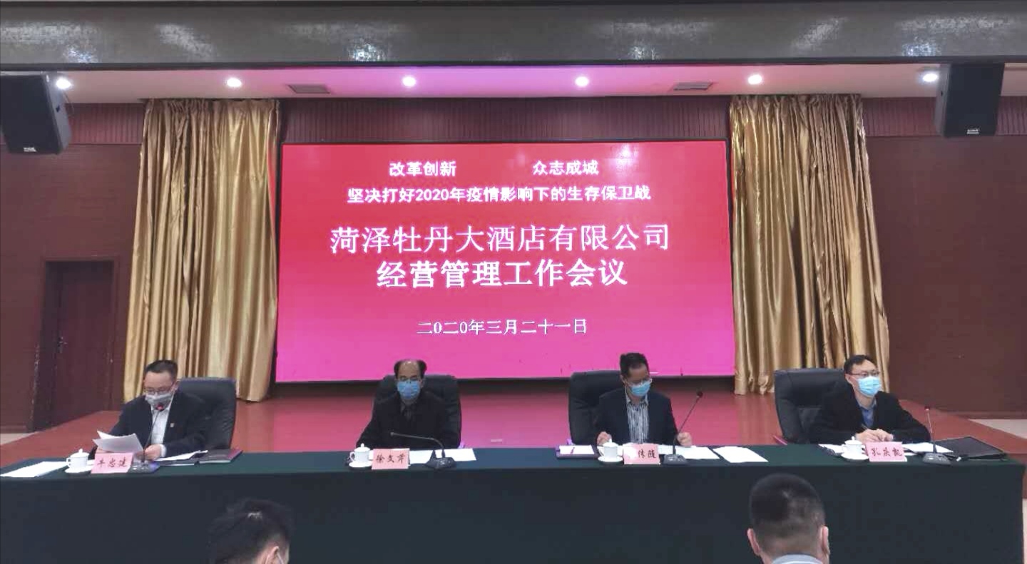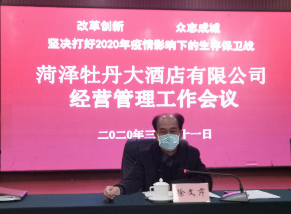 2020年3月21日上午,牡丹大酒店有限公司在酒店一樓多功能廳召開經(jīng)營管理工作推進會,集團公司黨委書記、董事長徐文芹,黨委委員、副總經(jīng)理祝傳隨,黨委會秘書、黨群工作部副部長孔慶凱等領(lǐng)導(dǎo),酒店主管以上管理人員參加了會議。