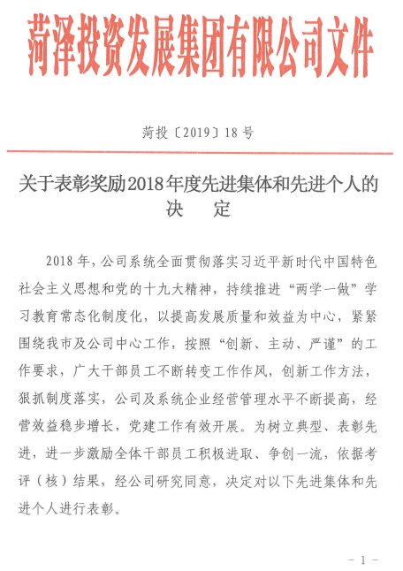 附:《關(guān)于表彰獎(jiǎng)勵(lì)2018年度先進(jìn)集體和先進(jìn)個(gè)人的決定》(菏投〔2019〕18號(hào))