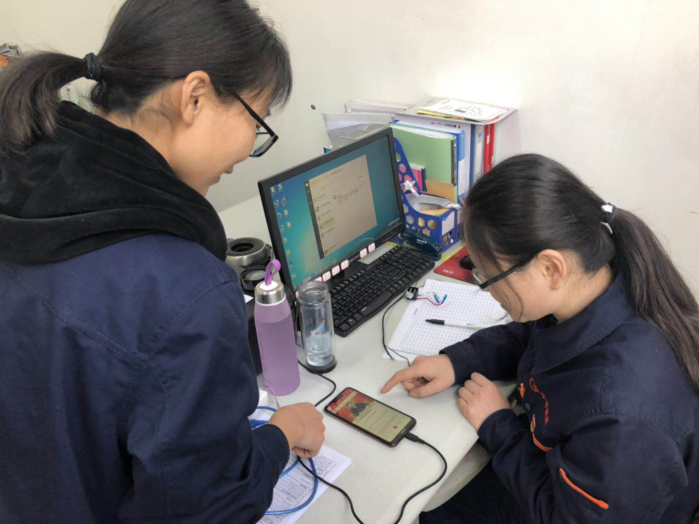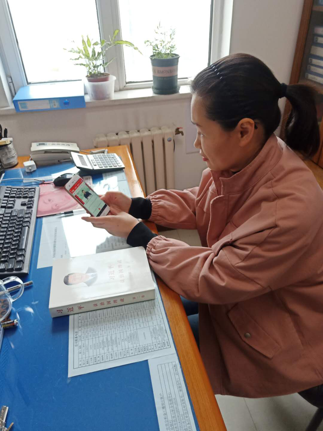 圖2:2019年2月6日,菏澤永順工程建設(shè)服務(wù)有限公司綜合管理部,公司“學(xué)習(xí)強(qiáng)國(guó)”平臺(tái)管理員徐娜同志在幫助同事熟悉“學(xué)習(xí)強(qiáng)國(guó)”APP操作。