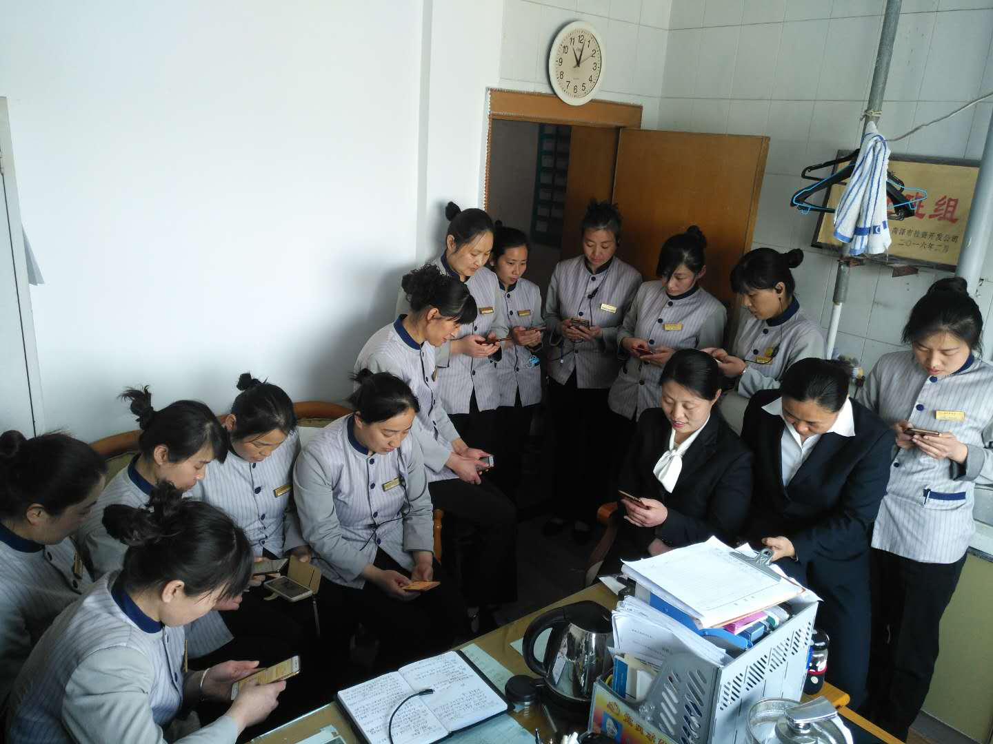 圖6:2019年1月31日,菏澤牡丹大酒店有限公司房務(wù)部辦公室,正在召開了部門會(huì)議,教員工如何使用“學(xué)習(xí)強(qiáng)國(guó)”APP,鼓勵(lì)員工把積累的學(xué)習(xí)經(jīng)驗(yàn)與身邊的同事分享,共同進(jìn)步。