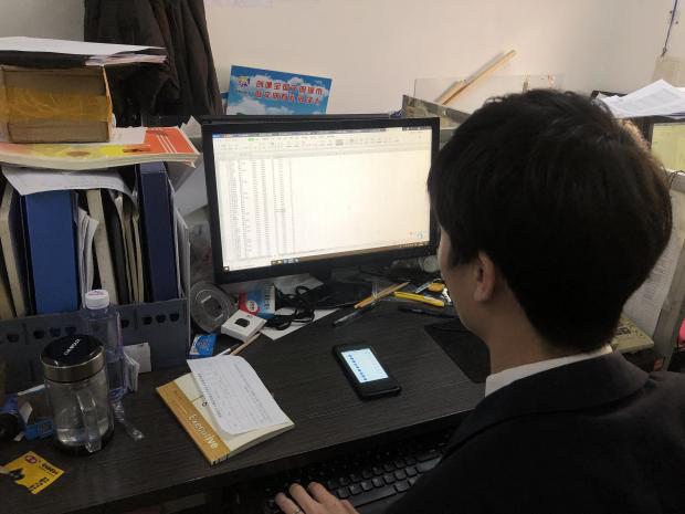 圖5:菏澤牡丹大酒店有限公司“學(xué)習(xí)強(qiáng)國(guó)”管理員孟星宇,正在統(tǒng)計(jì)“學(xué)習(xí)強(qiáng)國(guó)”學(xué)習(xí)排名,逐人進(jìn)行核對(duì)計(jì)算得分,積極與得分低個(gè)人取得聯(lián)系,了解清楚情況,進(jìn)行專門輔導(dǎo)。