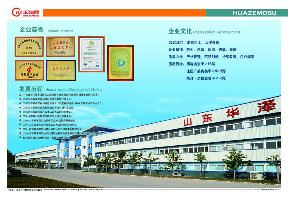 山東華澤電器有限公司(以下簡(jiǎn)稱“華澤電器”)成立于1995年,為菏澤投資發(fā)展集團(tuán)有限公司下屬國(guó)有企業(yè)。30年來,華澤電器以黨建為引領(lǐng),堅(jiān)守匠心,專注高端智能家電產(chǎn)品研發(fā)生產(chǎn)銷售,現(xiàn)主要業(yè)務(wù)產(chǎn)品有吸塵器、泳池清潔器、破壁機(jī)等多個(gè)家電行業(yè)的成套塑料模具開發(fā)制造及成品研發(fā)生產(chǎn),并與海爾集團(tuán)、九陽集團(tuán)、海信集團(tuán)等國(guó)際知名品牌建立了長(zhǎng)期友好合作關(guān)系。?公司現(xiàn)有員工近200人,其中大中專以上學(xué)歷員工占70%,已通過ISO 9001:2015質(zhì)量體系認(rèn)證,擁有德國(guó)德瑪吉、瑞士米克朗、日本小巨人、江門佳鐵、臺(tái)灣大畏、友佳等數(shù)控加工中心;三菱、漢奇、騰順線切割加工中心;上海漢霸、捷甬達(dá)、三菱電火花機(jī);瑞典思瑞三坐標(biāo)全自動(dòng)測(cè)量?jī)x;海天、東華、震雄等40余臺(tái)高端注塑機(jī),每臺(tái)機(jī)器均配有機(jī)械手,可實(shí)現(xiàn)小家電成品、半成品高精度、自動(dòng)化生產(chǎn)。