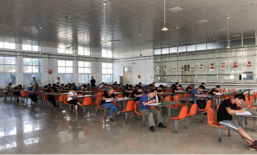競賽活動分兩部分進行,一是9月3日上午,模具事業(yè)部全體員工在職工餐廳進行了統(tǒng)一的理論知識考試??荚嚽霸嚲碛晒巨k公室統(tǒng)一保管,考試采用單人單桌的形式,不同工序的員工使用不同的試卷。二是9月3日下午到9月5日晚,在模具車間進行了崗位技能考試,考試分工序、分時段進行,為保證考試的公平公正,按照考試順序組織已考人員和待考人員分區(qū)域等候。為確保考試結(jié)果的真實性,理論考試閱卷采用了密封個人信息閱卷的方式,并由督察部人員監(jiān)督考試和閱卷打分過程。
