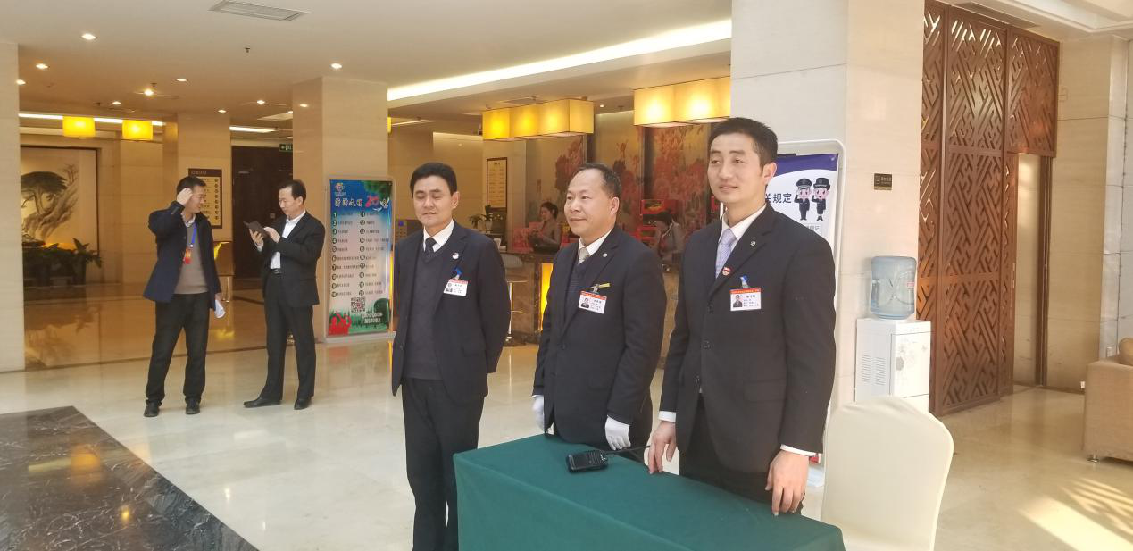 為保障好人代會(huì)的接待工作,酒店大酒店提前行動(dòng),一是制定周密的接待預(yù)案,列出詳細(xì)的接待程序和接待流程,成立酒店接待服務(wù)領(lǐng)導(dǎo)小組,下設(shè)接待服務(wù)組、保障服務(wù)組、治安消防組、行政調(diào)度組四個(gè)專業(yè)組。二是進(jìn)行了一次全面的消防安全檢查。對(duì)安全消防設(shè)備、空調(diào)設(shè)備等進(jìn)行全面檢修檢查,確保正常高效運(yùn)轉(zhuǎn)。三是前廳部對(duì)前廳、客房、餐飲等部門員工進(jìn)行集中培訓(xùn),提高服務(wù)標(biāo)準(zhǔn),確保人大代表入住安心,用餐放心,服務(wù)貼心。