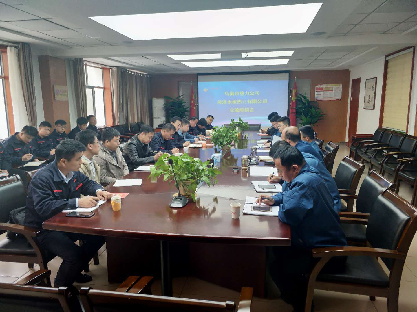 座談會上,烏海市熱力公司總經(jīng)理任智、副總經(jīng)理李金成等相繼發(fā)言,詳細(xì)介紹了烏海市熱力公司的總體發(fā)展歷程、規(guī)模、企業(yè)組織架構(gòu)、管理模式等。隨后,雙方就此行交流學(xué)習(xí)的一些重點關(guān)切問題展開了交流,圍繞機(jī)構(gòu)設(shè)置、人員管理、收費服務(wù)、管網(wǎng)運行維修、平衡調(diào)整、換熱站建設(shè)、政府政策扶持及技術(shù)標(biāo)準(zhǔn)、停復(fù)供業(yè)務(wù)辦理有關(guān)規(guī)定以及熱網(wǎng)運行調(diào)節(jié)、換熱站自動化、站區(qū)管理模式等相關(guān)方面展開,雙方技術(shù)人員還深入交流了工程施工、驗收、交接及智慧供熱、節(jié)能降耗方面相關(guān)情況及經(jīng)驗做法,現(xiàn)場氣氛熱烈融洽,大家踴躍發(fā)言。