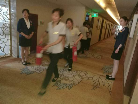 理論培訓(xùn)結(jié)束后,酒店餐飲部、前廳部、房務(wù)部按照消防演習(xí)方案各自進(jìn)行了火災(zāi)報警、初起火災(zāi)撲救、人員應(yīng)急疏散模擬演習(xí),酒店員工統(tǒng)一參加酒店的滅火實(shí)戰(zhàn)演練。