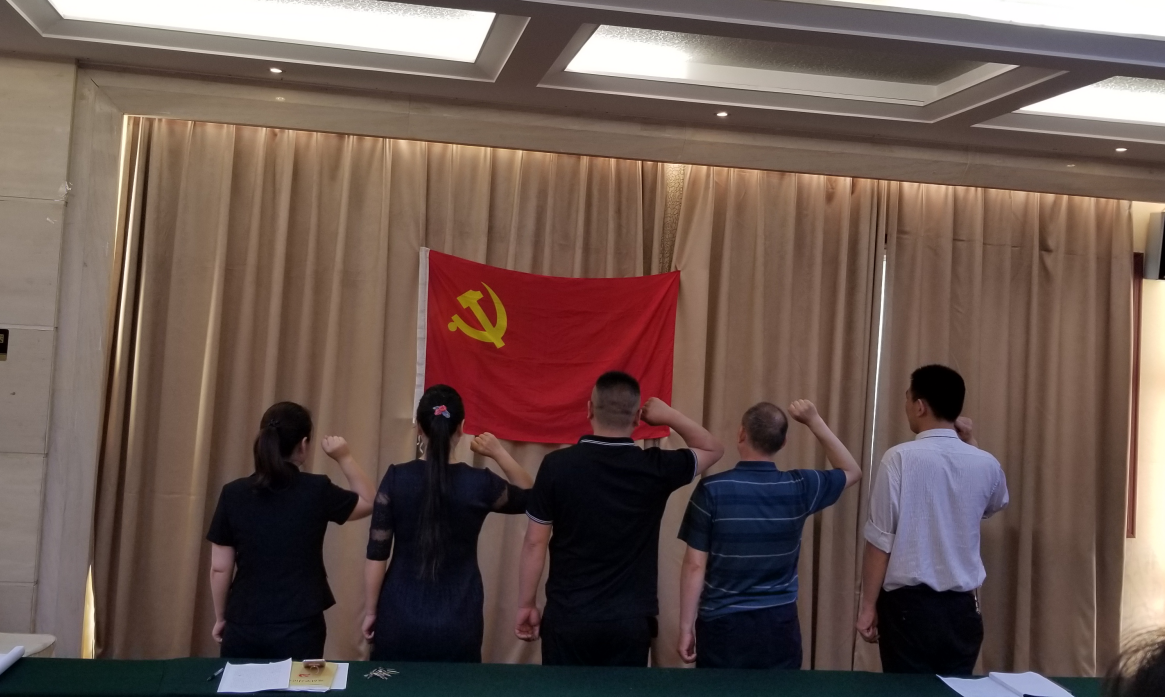 主題黨日首先根據(jù)“五強(qiáng)一創(chuàng)”工作要求,舉行重溫入黨誓詞活動(dòng),在6月份入黨的全體黨員出列整隊(duì),重溫了入黨誓詞。為增強(qiáng)黨性教育,牡丹大酒店黨支部每月舉行一次黨員重溫入黨誓詞活動(dòng)。守著莊嚴(yán)的黨旗,黨員們鏗鏘有力的入黨誓詞久久回蕩。
