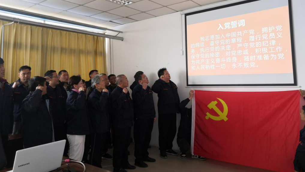 學(xué)習(xí)結(jié)束后,全體與會(huì)黨員佩戴黨徽,面向黨旗,在周立新書記的帶領(lǐng)下,共同重溫了入黨誓詞,同志們宣誓鏗鏘有力,表達(dá)了對(duì)黨的無限忠誠。