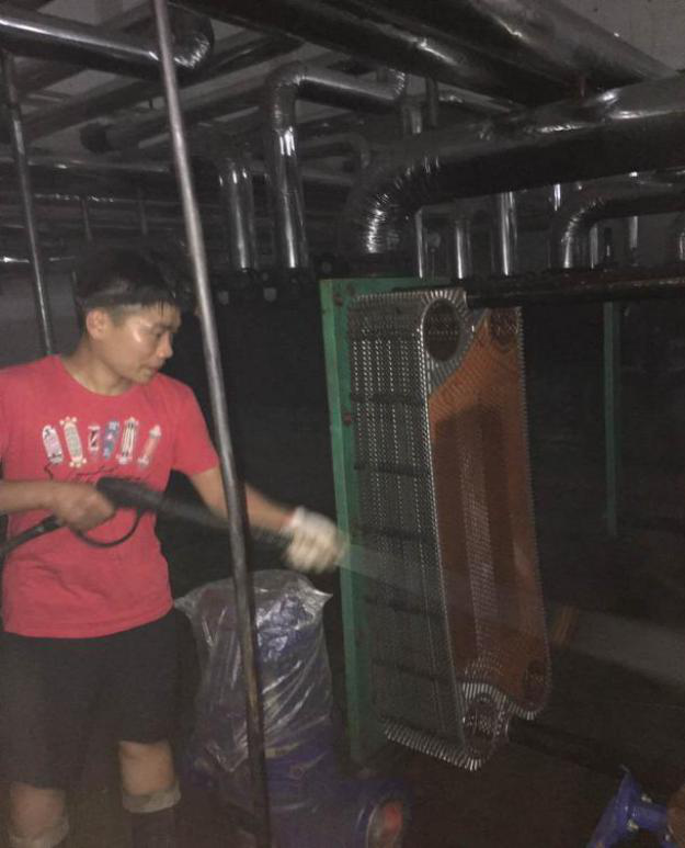 在6月份至7月上旬,隨著下個(gè)供暖的不斷臨近,換熱器作為整個(gè)供熱循環(huán)系統(tǒng)中必不可少的一個(gè)環(huán)節(jié),小區(qū)換熱器換熱能力的好壞直接決定了整個(gè)小區(qū)的取暖效果,也就決定了千家萬(wàn)戶的取暖質(zhì)量。為有效改善轄區(qū)內(nèi)各小區(qū)換熱器小區(qū)的取暖效果,工作人員會(huì)在前期綜合研判的情況下對(duì)相關(guān)換熱器進(jìn)行清洗作業(yè)。雖然清洗換熱器是一個(gè)體力消耗巨大、又臟又苦的難活、累活,但是永恒熱力人對(duì)困難并沒(méi)有絲毫妥協(xié),面對(duì)清洗過(guò)程中,換熱片會(huì)逐漸干燥、脫水導(dǎo)致難以沖洗,為避免此問(wèn)題,必須加班加點(diǎn)進(jìn)行清洗,直至清洗完畢。