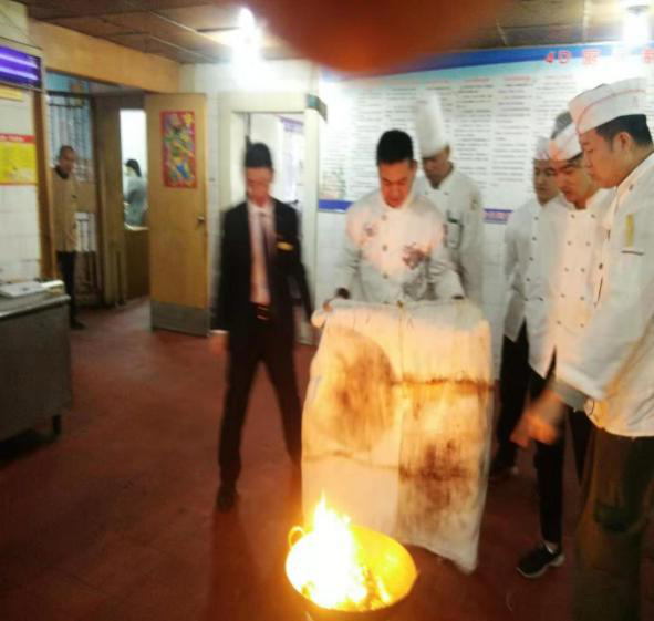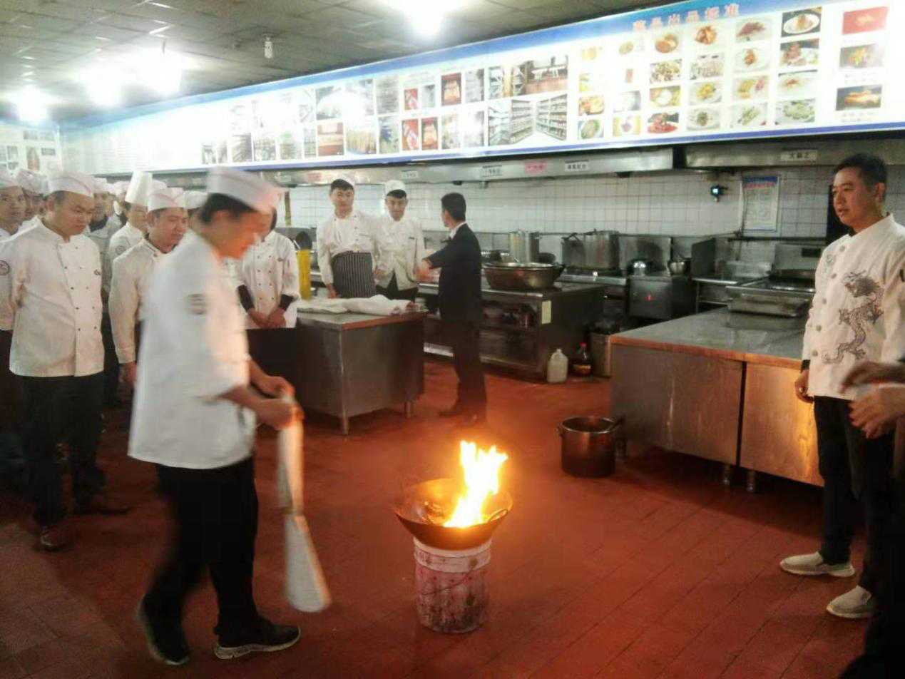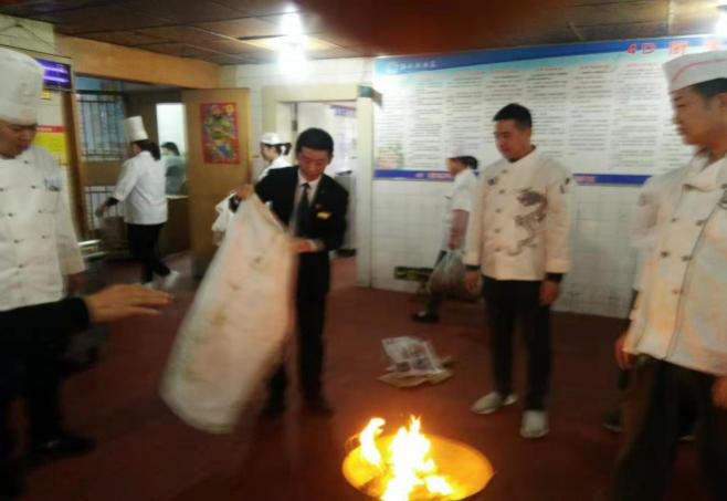 首先由督查安監(jiān)部主管對(duì)員工進(jìn)行廚房的油、電、氣的正確使用進(jìn)行詳細(xì)的講演,對(duì)工作中可能出現(xiàn)的突發(fā)事故進(jìn)行了詳細(xì)分析;然后針對(duì)可能發(fā)生著火事故的燃?xì)庑孤?、油鍋起火后正確滅火的使用方法進(jìn)行了實(shí)戰(zhàn)演練,通過(guò)學(xué)習(xí)使全體員工熟練掌握了滅火毯及滅火器的正確使用方法。